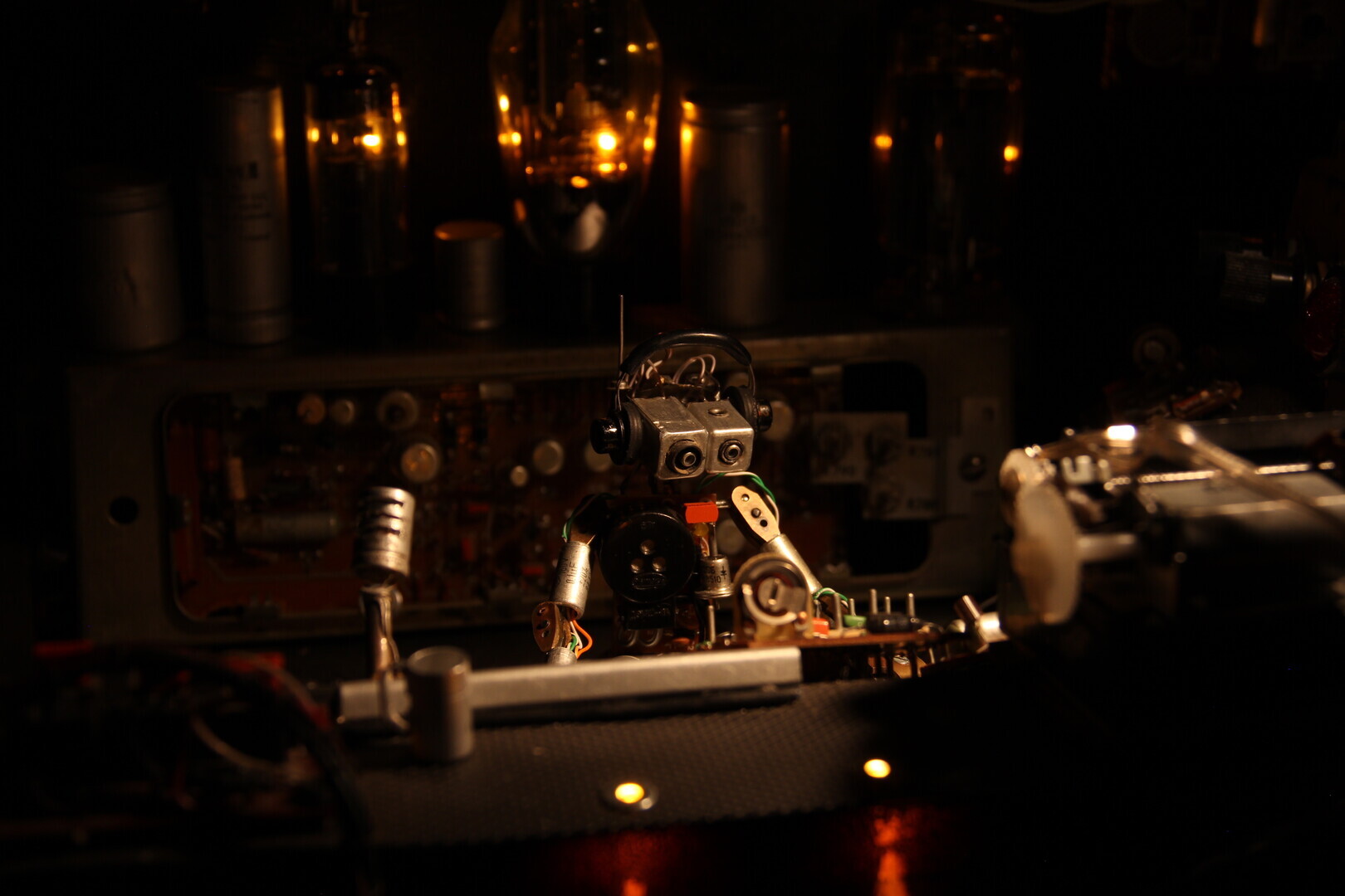 Radion the robot, who works as a radio announcer, is taking a day off.